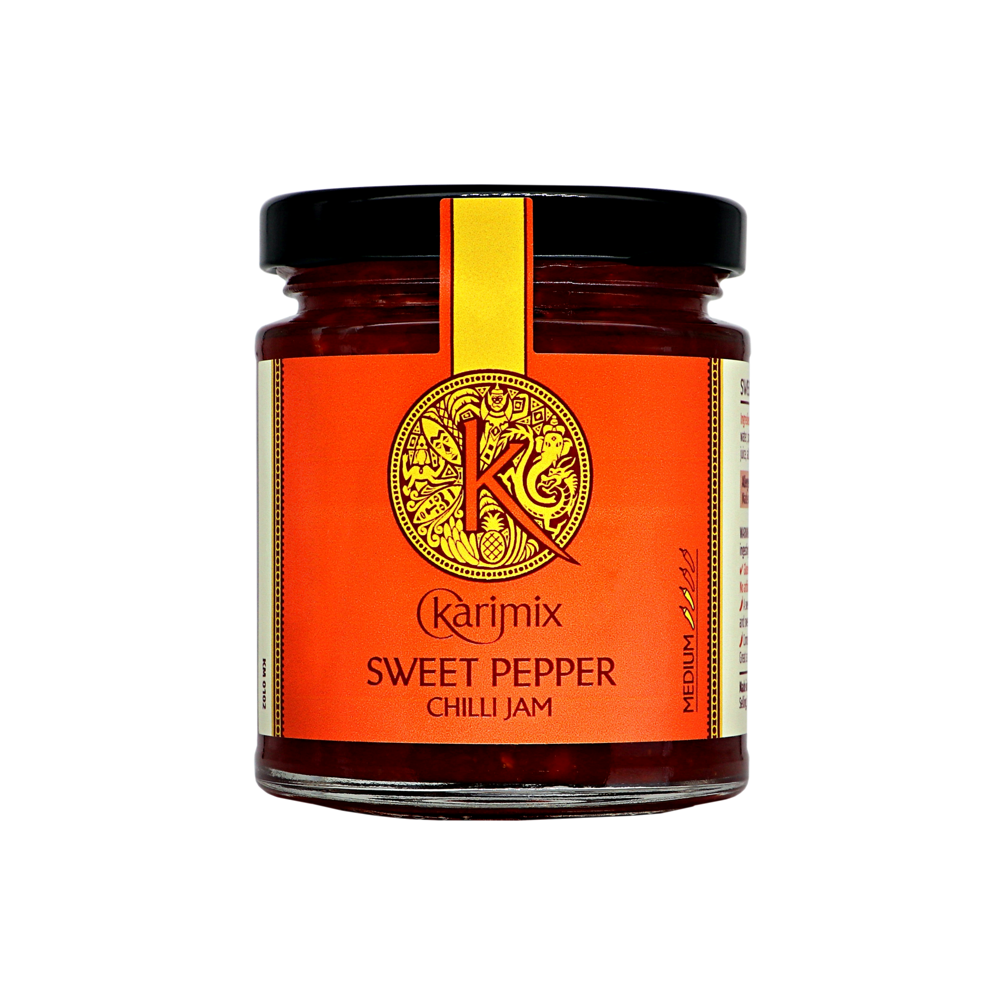 A sweet hot red jam speckled with bits of chilli and sweet pepper. Gluten free and suitable for vegans this jam is fabulous with cold meats or cheese plates. It can also be mixed with Dijon mustard and used as a marinade chicken or pork. Mild in heat.