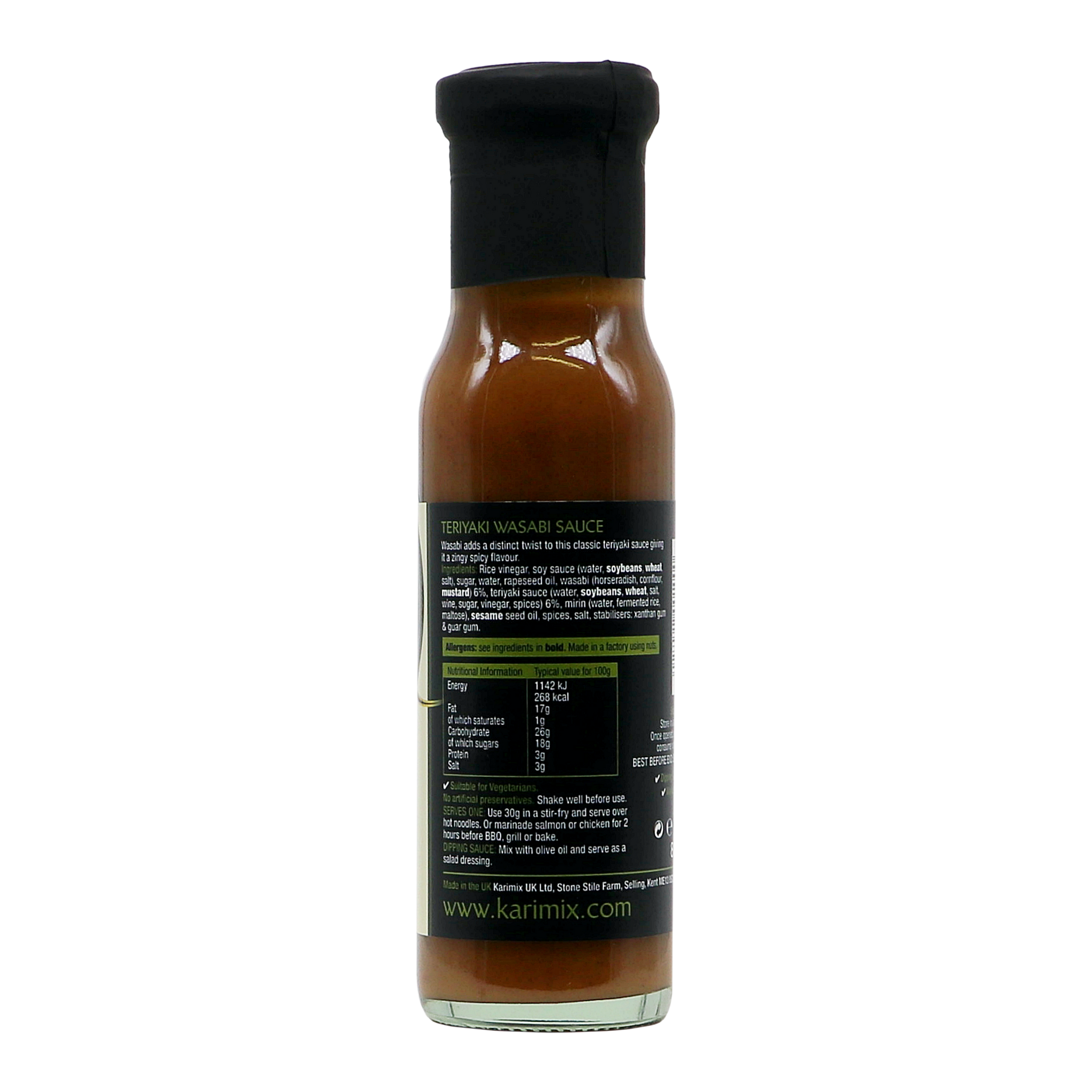 A zingy, spicy flavoured sauce, the wasabi adds a distinct twist to the traditional teriyaki, and gives it a sharp kick! Suitable for vegans, but not gluten free, use it as a glaze or marinade on meat or fish, pour it directly from the bottle onto noodles or rice, or use it for dipping.