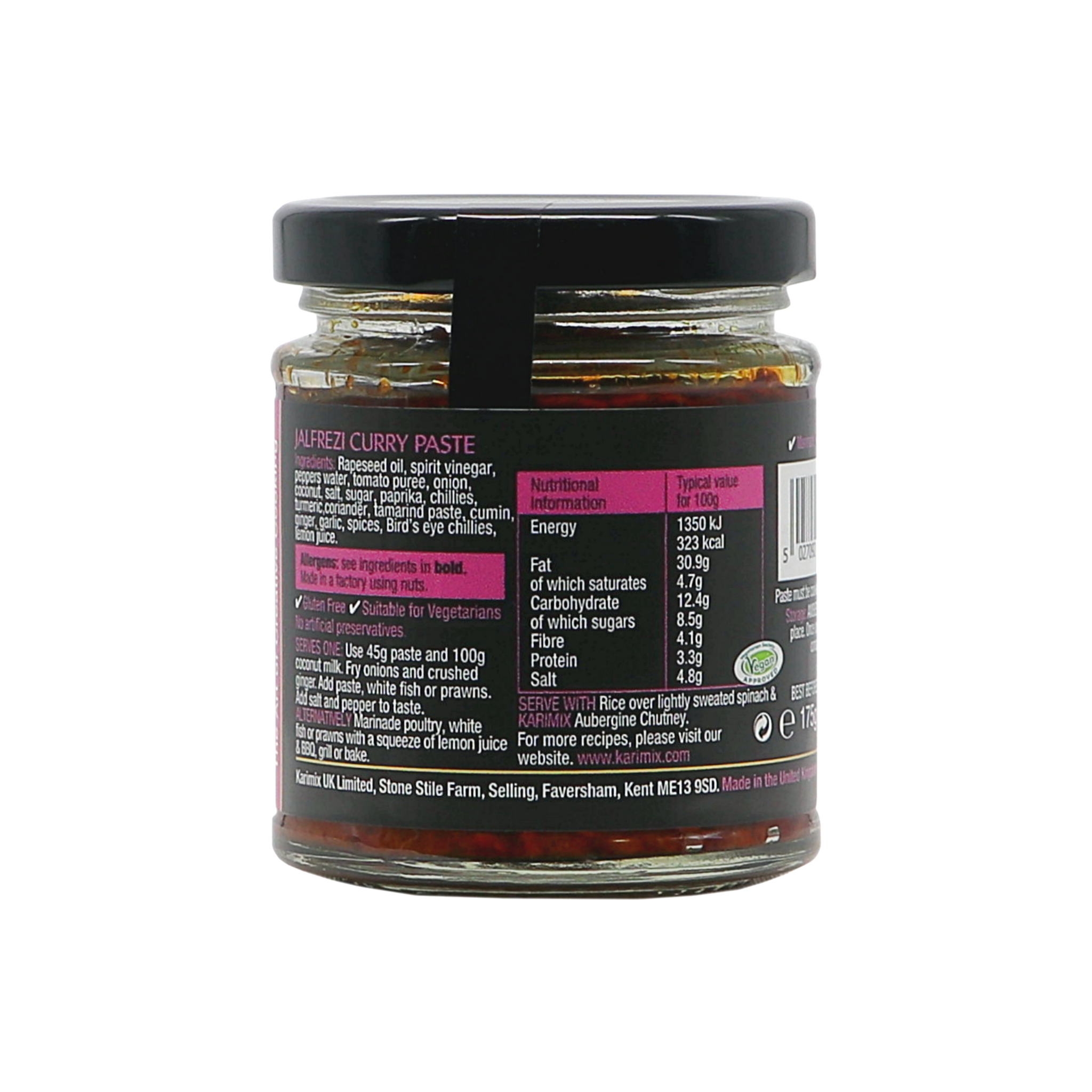 A spicy, aromatic curry with strong flavour of pepper, coriander and onions. Gluten free, and suitable for vegans, it is great as a marinade for meat before baking, grilling or BBQ. It has a heat rating of hot.