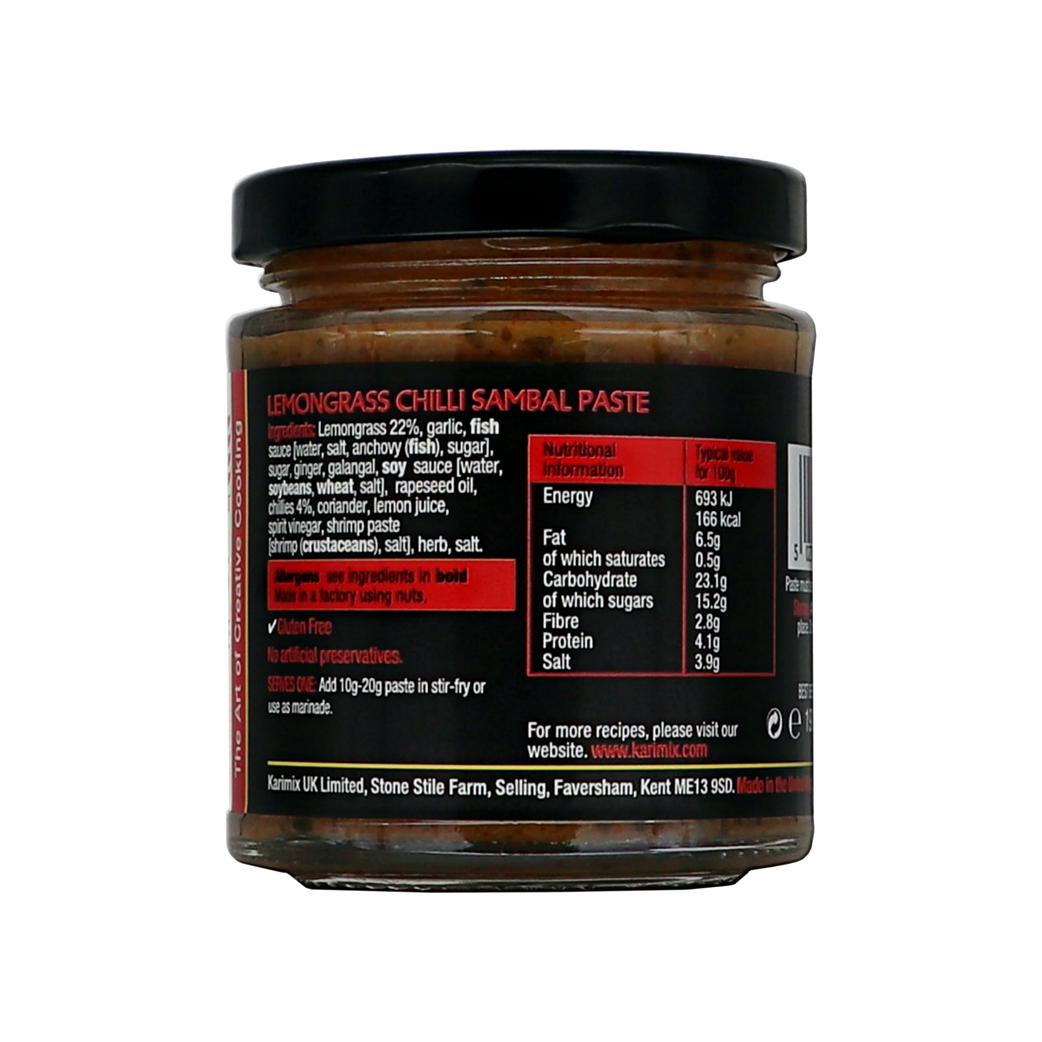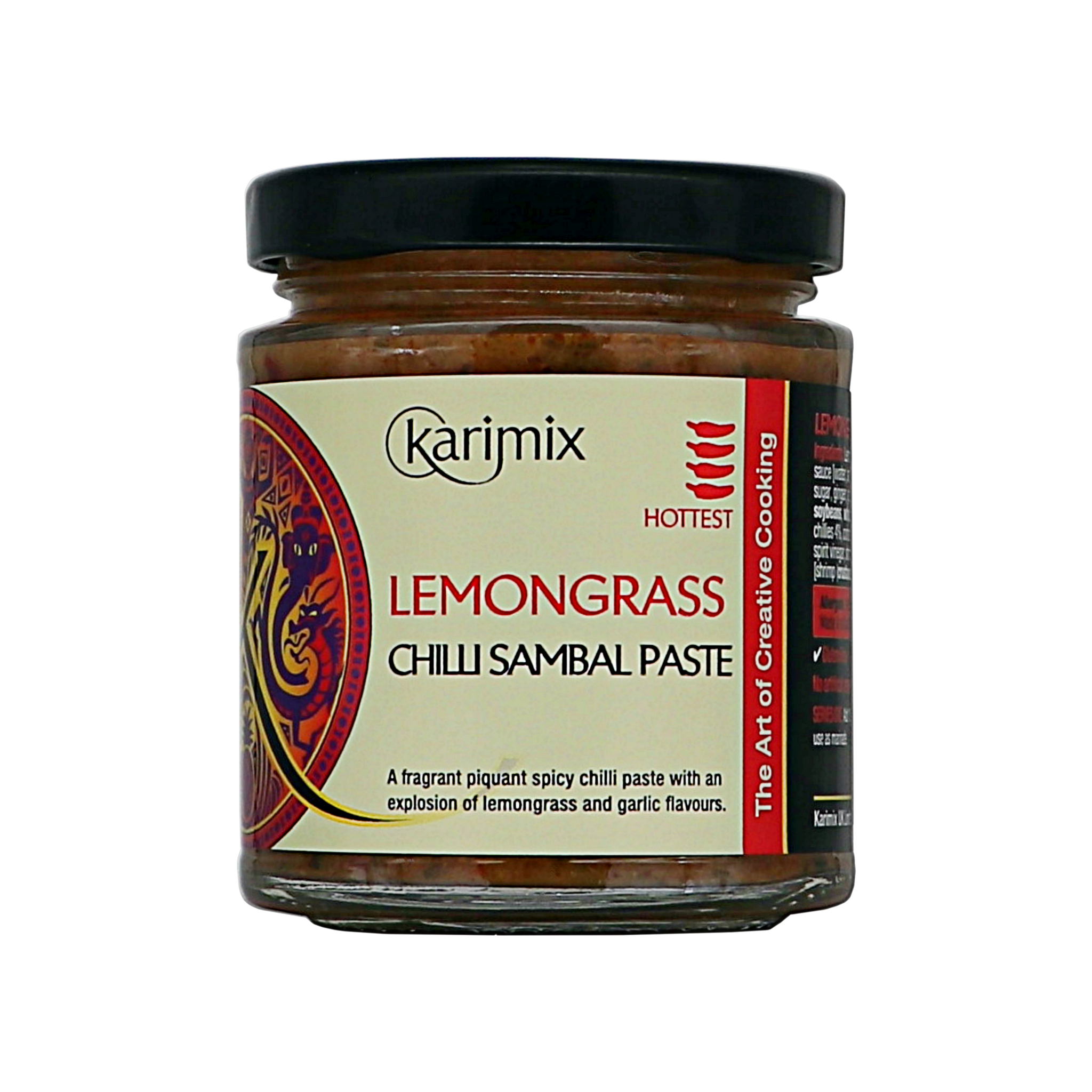 A fragrant piquant spicy chilli paste with an explosion of lemongrass and garlic flavours. Use as a marinade with fish or prawns, or add to cooked rice and mixed with chopped peppers and coconut milk.