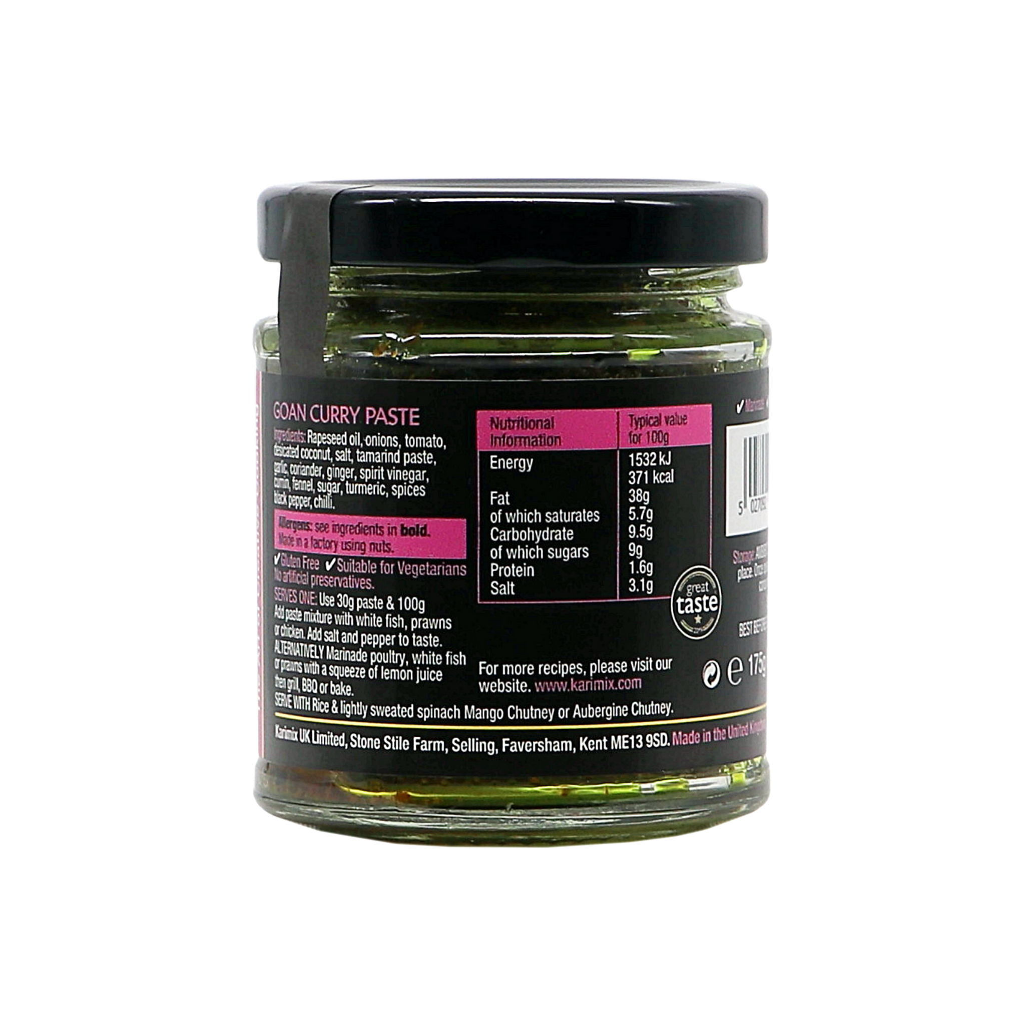Rapeseed oil, onion, sugars, coconut, salt, tamarind paste, garlic, coriander, ginger, spirit vinegar, cumin, fennel, turmeric, black pepper, spices, cinnamon, chillies